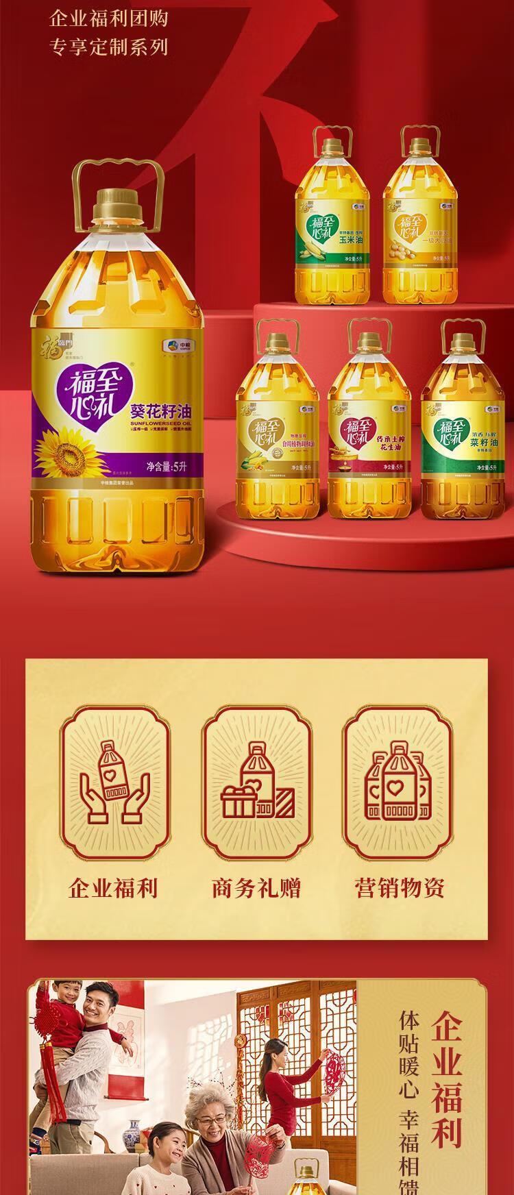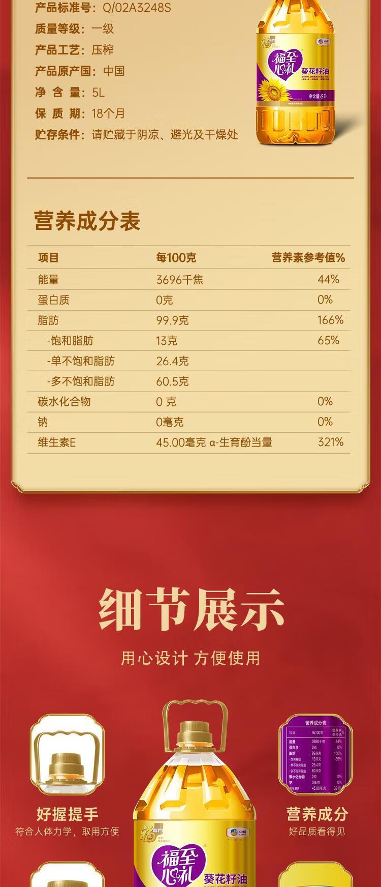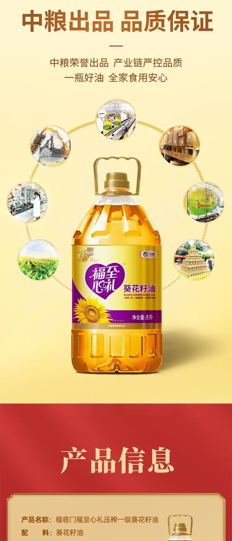商品名称:福临门 福至心礼 葵花籽油 5L 单位:瓶