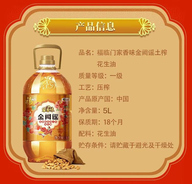 商品名称:福临门 金阙谣 花生油 5L 单位:瓶