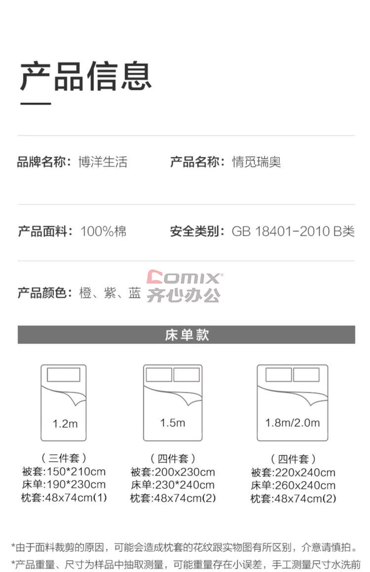 商品名称:博洋生活 四件套情觅瑞奥(蓝)1.5m 单位:套