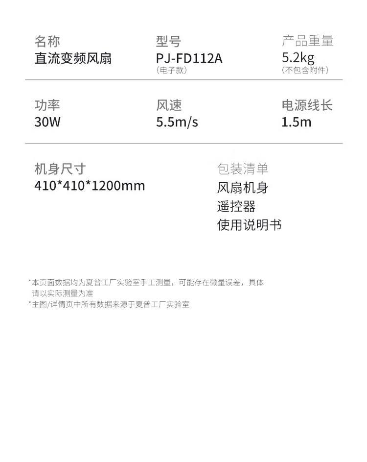 商品名称:夏普 落地扇 PJ-FD112A 单位:台