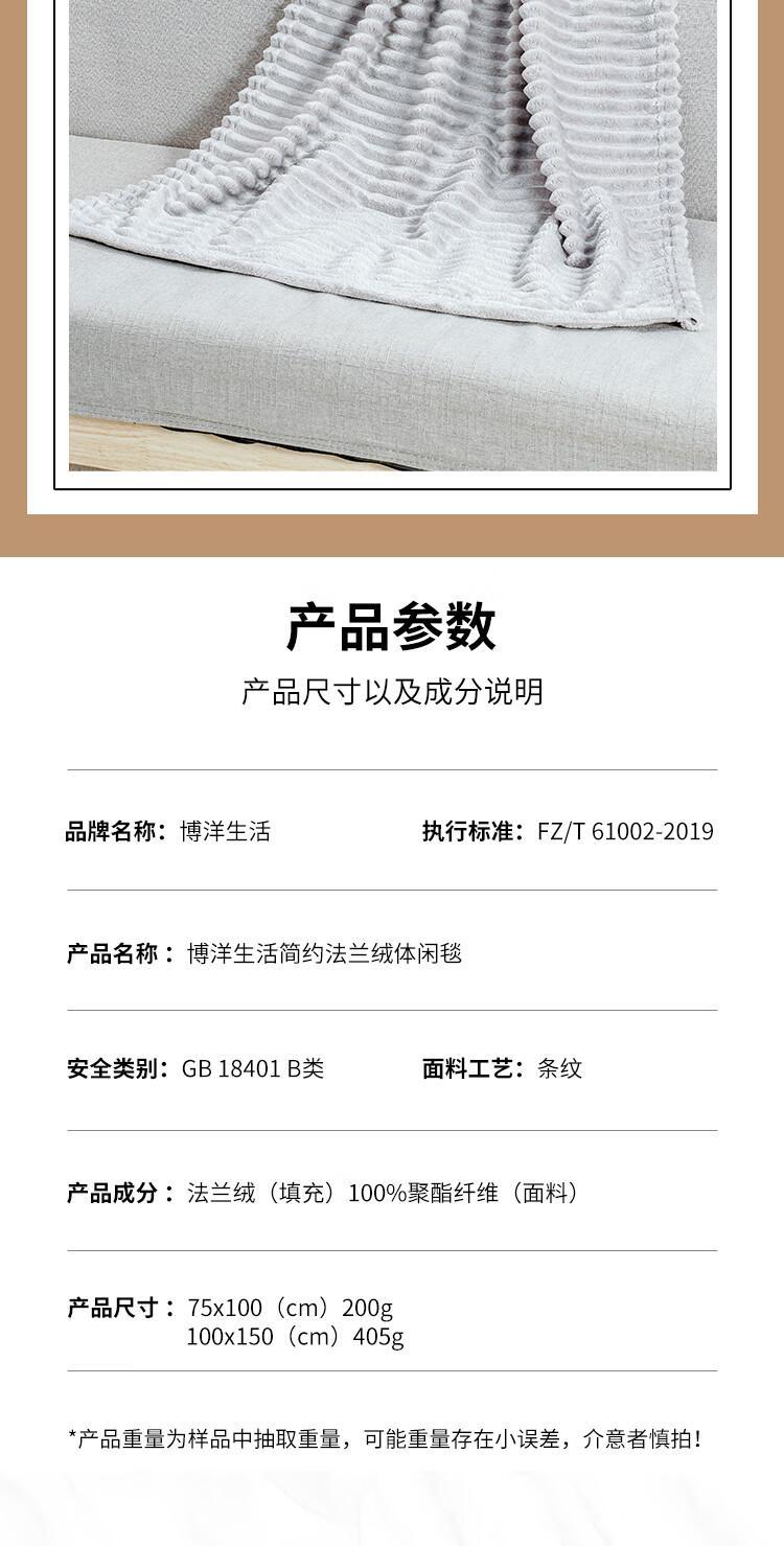 商品名称:博洋生活 简约法兰绒休闲毯 75*100cm 单位:条