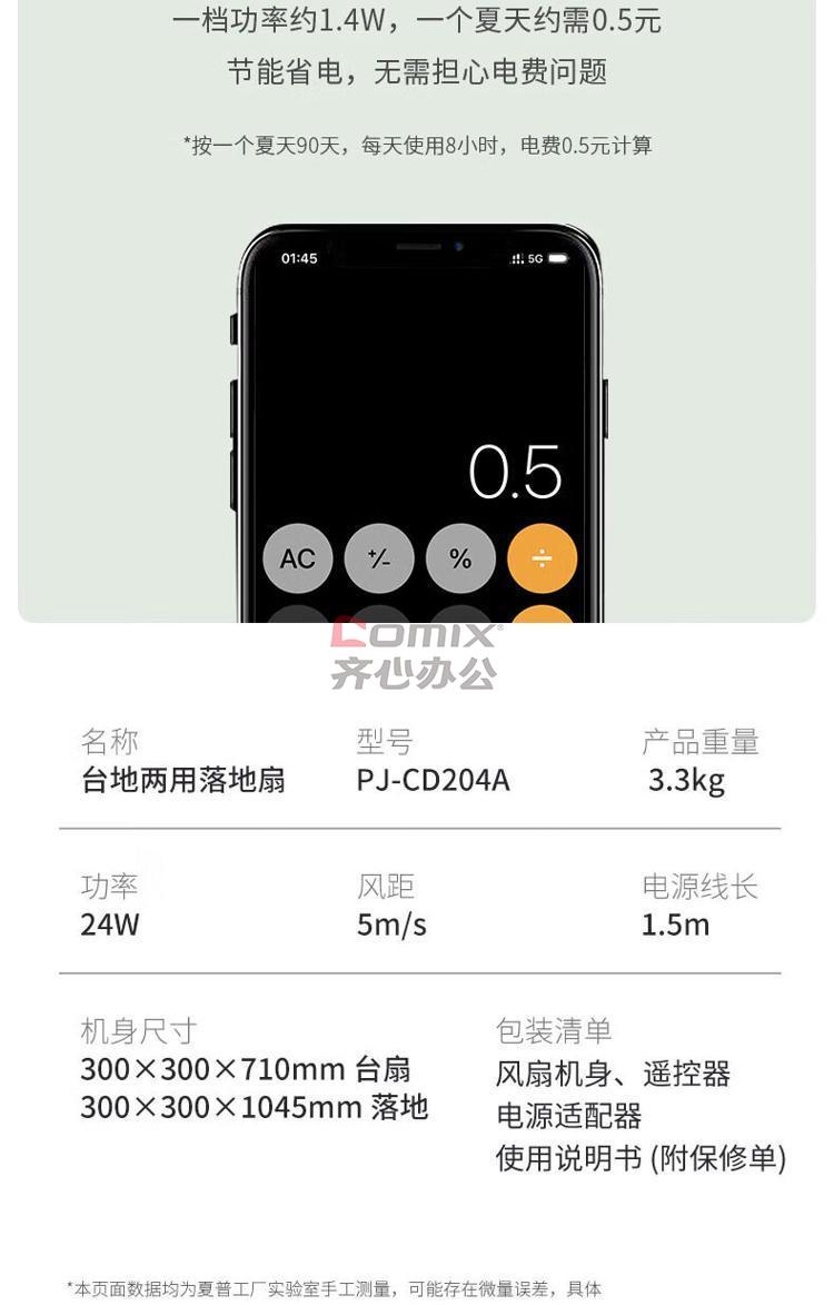 商品名称:夏普 落地扇 PJ-CD204A 单位:台