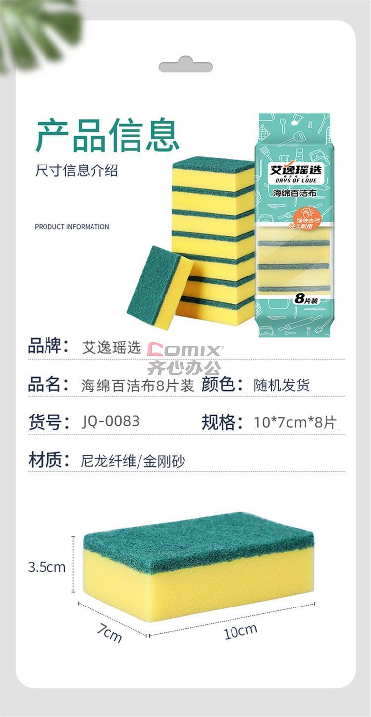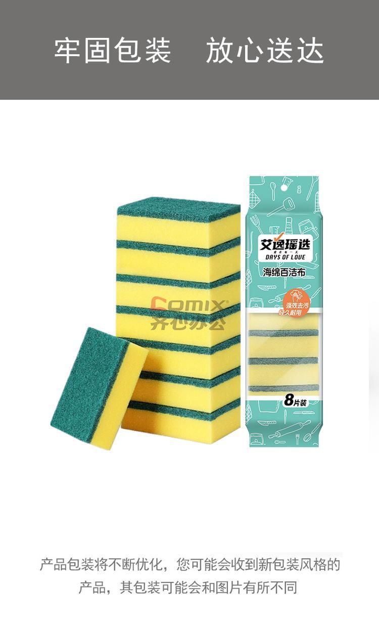 商品名称:艾逸瑶选-JQ-0083-海绵百洁布8片装-8片装 -黄色-单位:袋