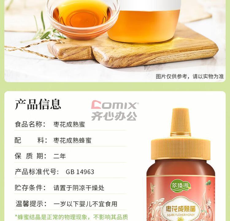 商品名称:萃臻源 蜂蜜 枣花蜜 500g(瓶装)成熟蜜 单位:瓶