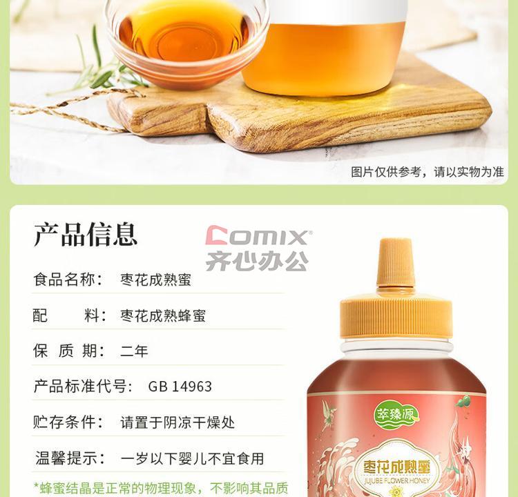 商品名称:萃臻源 蜂蜜 枣花蜜 1000g(瓶装)成熟蜜 单位:瓶