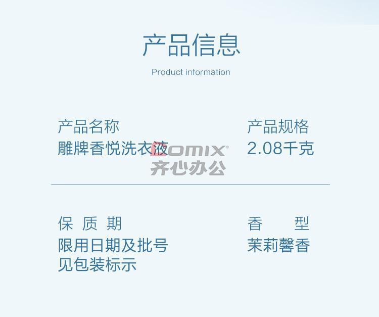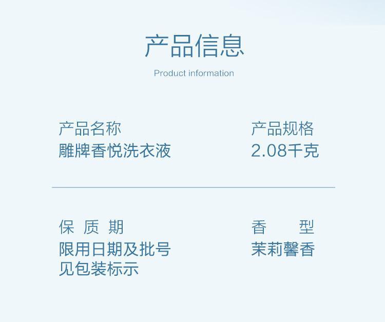 商品名称:雕牌 香悦2.08kg 洗衣液 单位:瓶