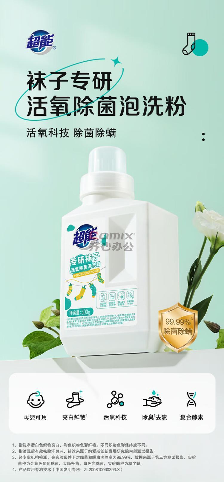 超能 专研袜子活氧除菌500g 泡洗粉 单位:包