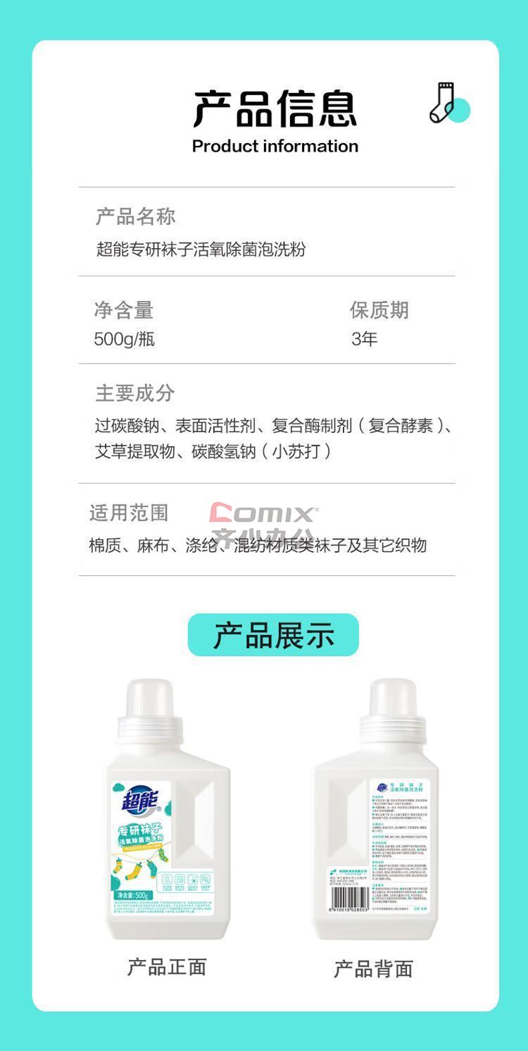 商品名称:超能 专研袜子活氧除菌500g 泡洗粉 单位:包