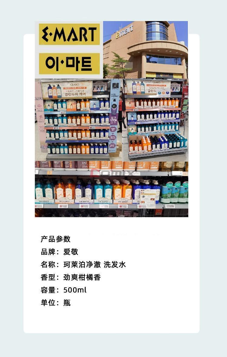 商品名称:爱敬 珂莱泊净澈 洗发水 劲爽柑橘香 500ml 单位:瓶