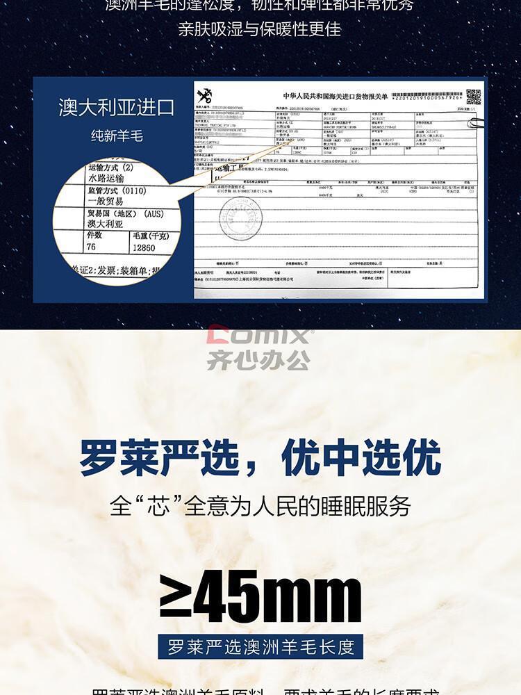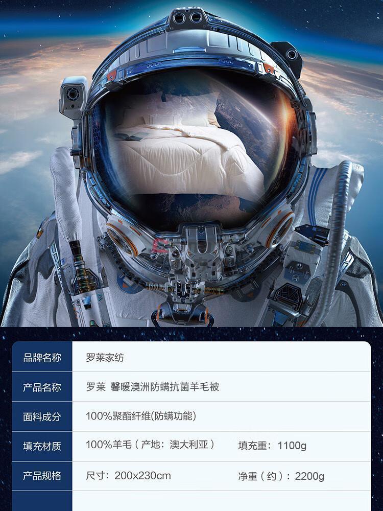 商品名称:罗莱 馨暖澳洲防螨抗菌 羊毛被 200*230cm 单位:件