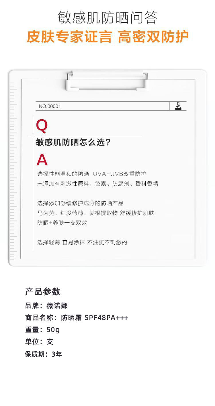 商品名称:薇诺娜 防晒霜 SPF48PA+++ 50g 单位:支