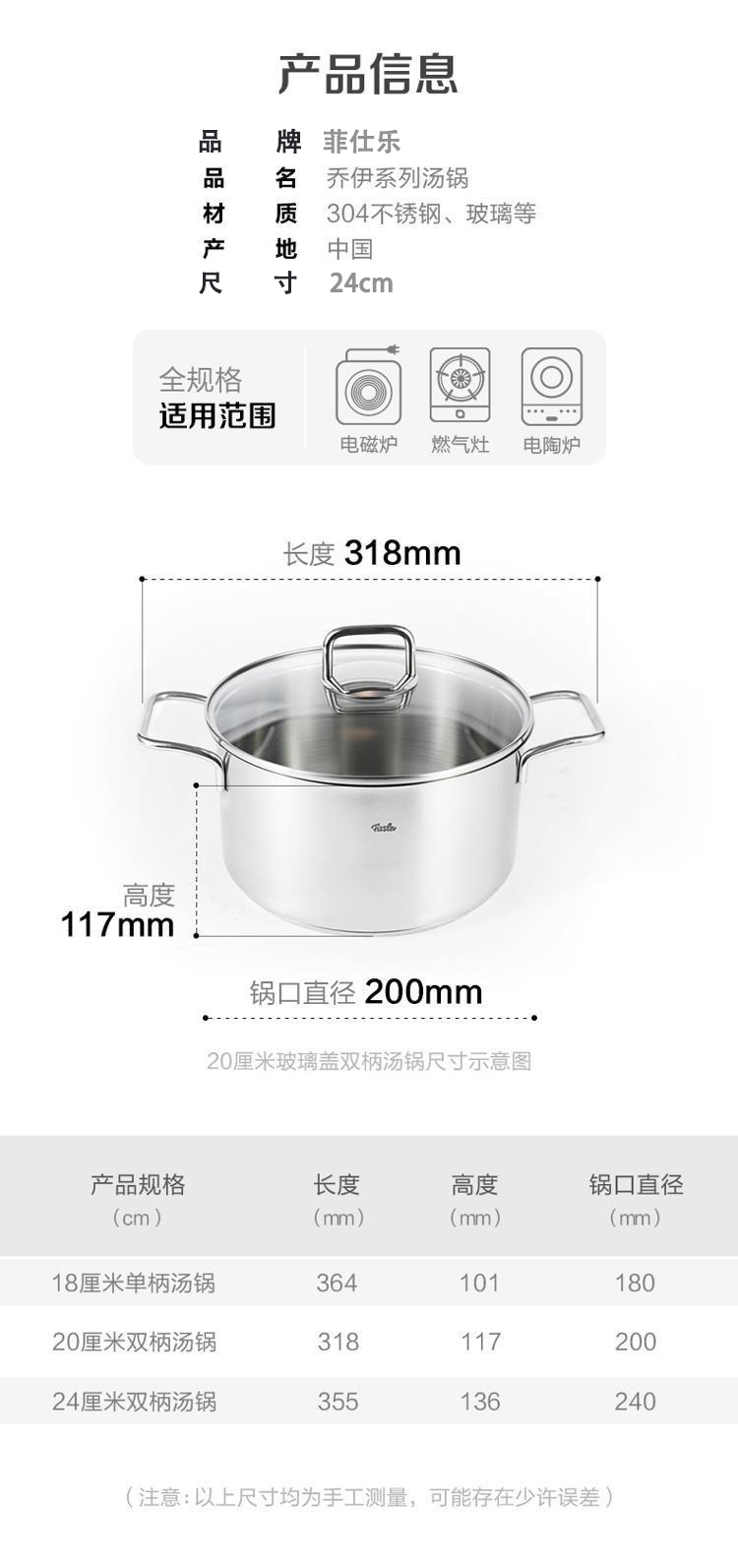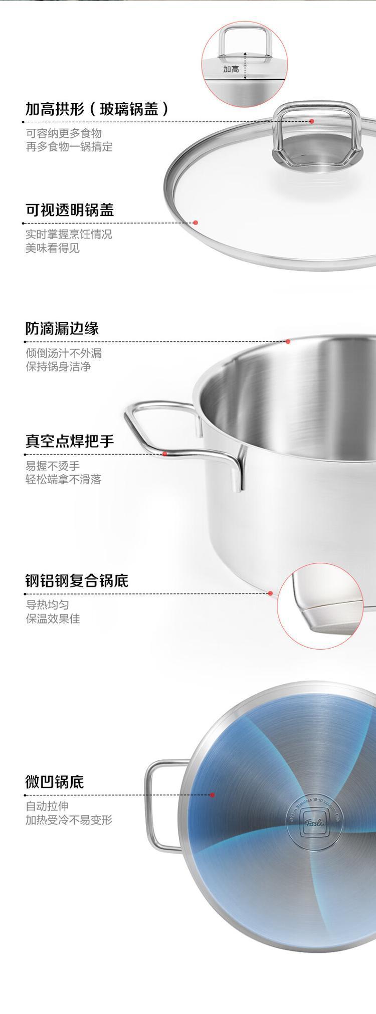 商品名称:菲仕乐 汤锅 乔伊玻璃盖不锈钢双柄 24cm 单位:个
