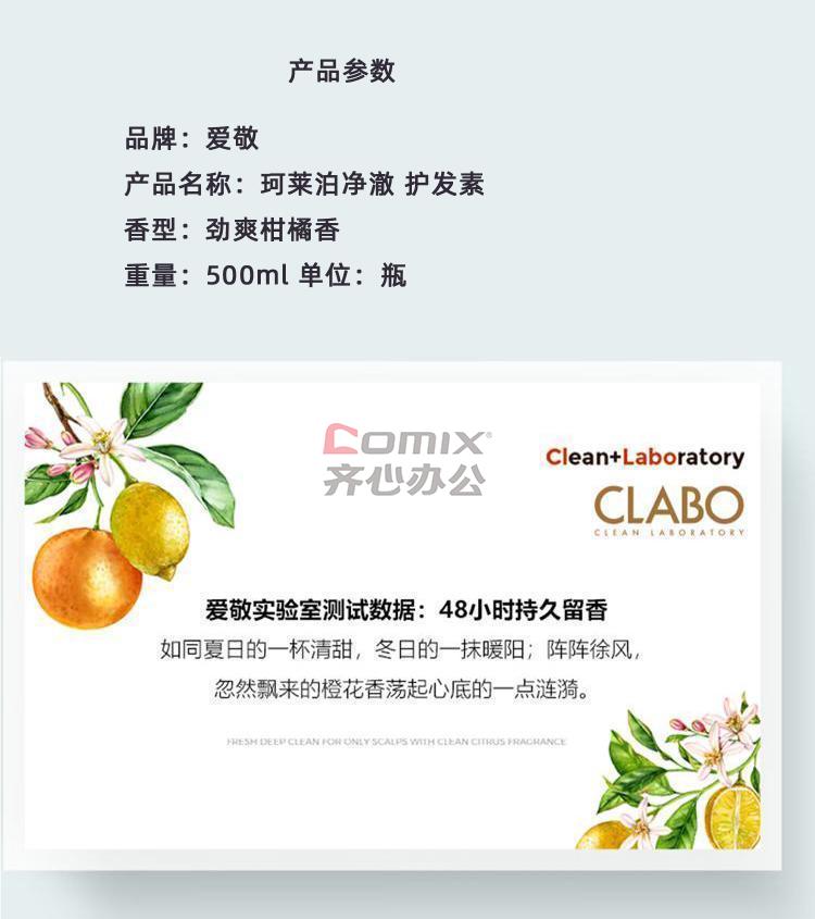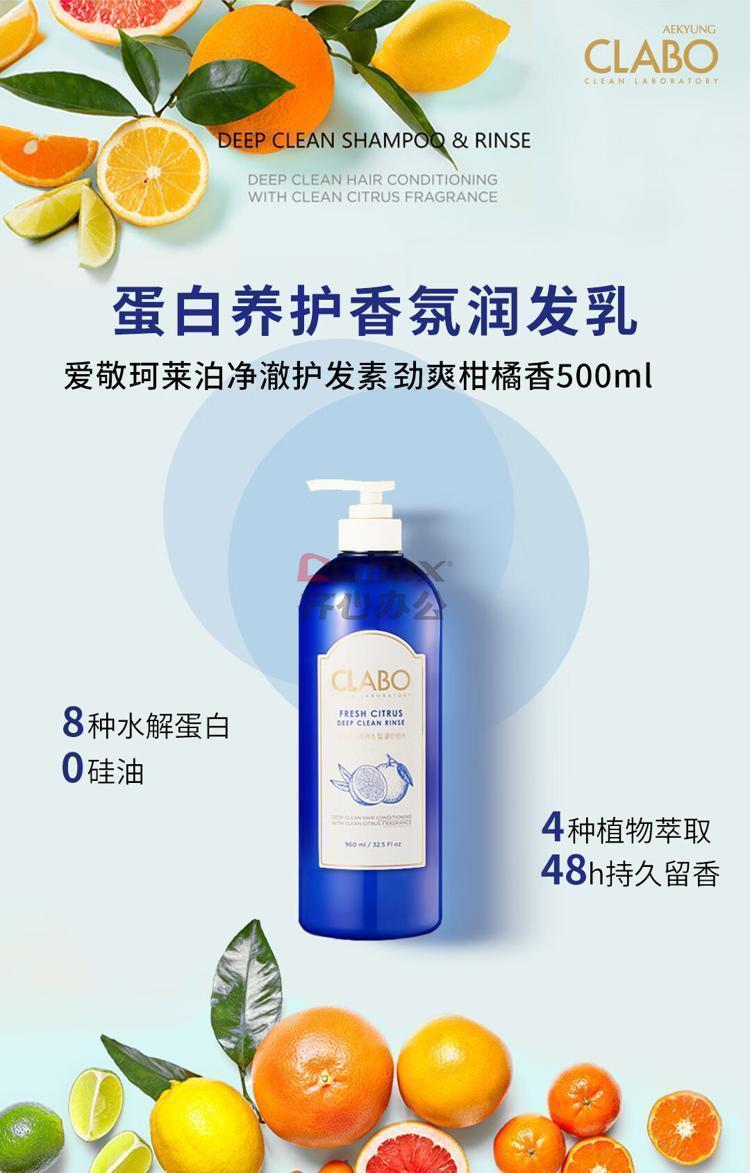 商品名称:爱敬 珂莱泊净澈 护发素 劲爽柑橘香 500ml 单位:瓶