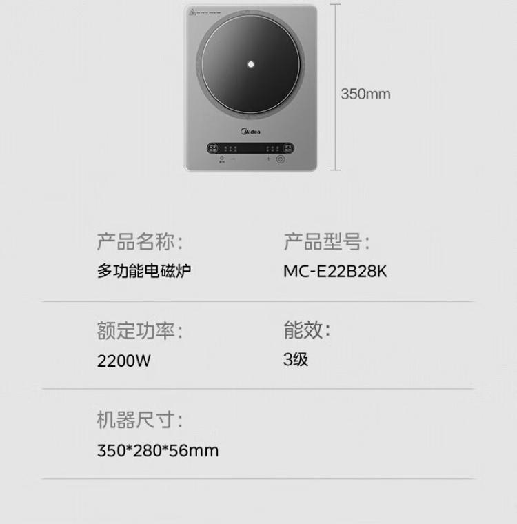 商品名称:美的 电磁炉 MC-E22B28K 单位:台