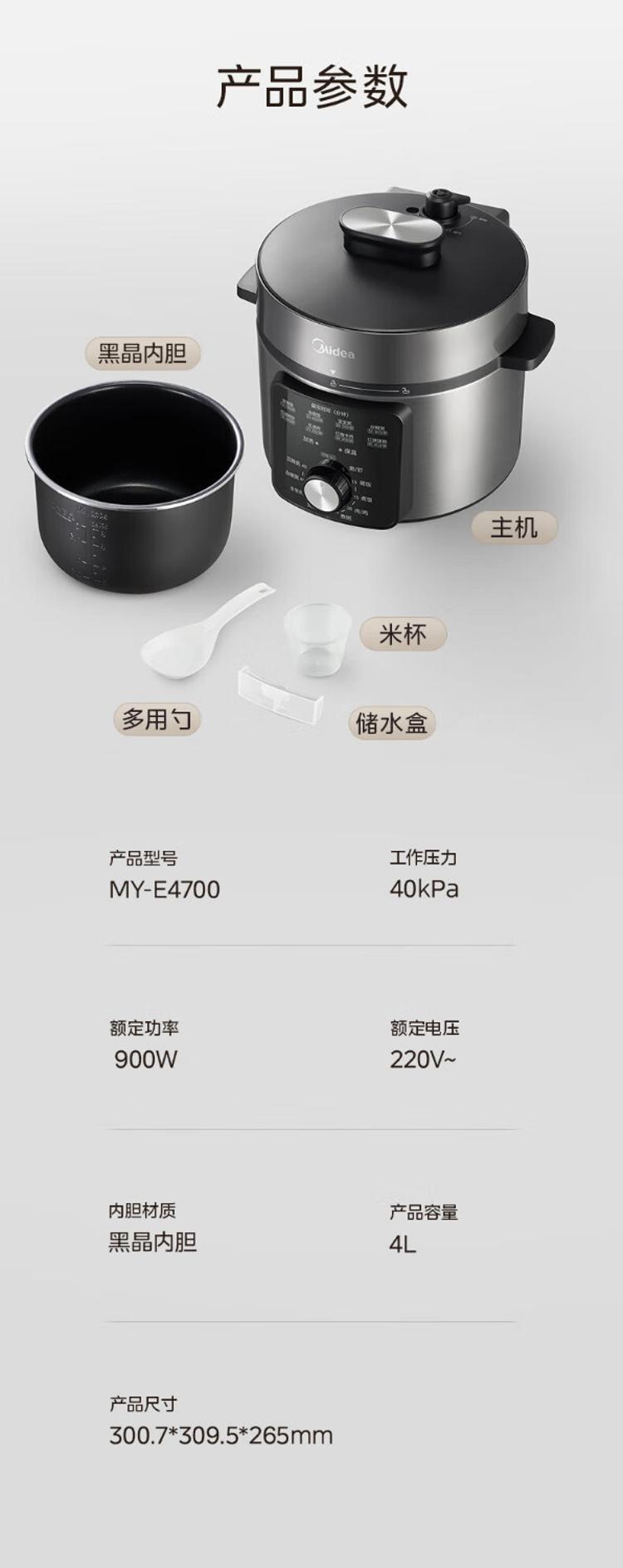 商品名称:美的 电压力锅 MY-E4700 单位:台