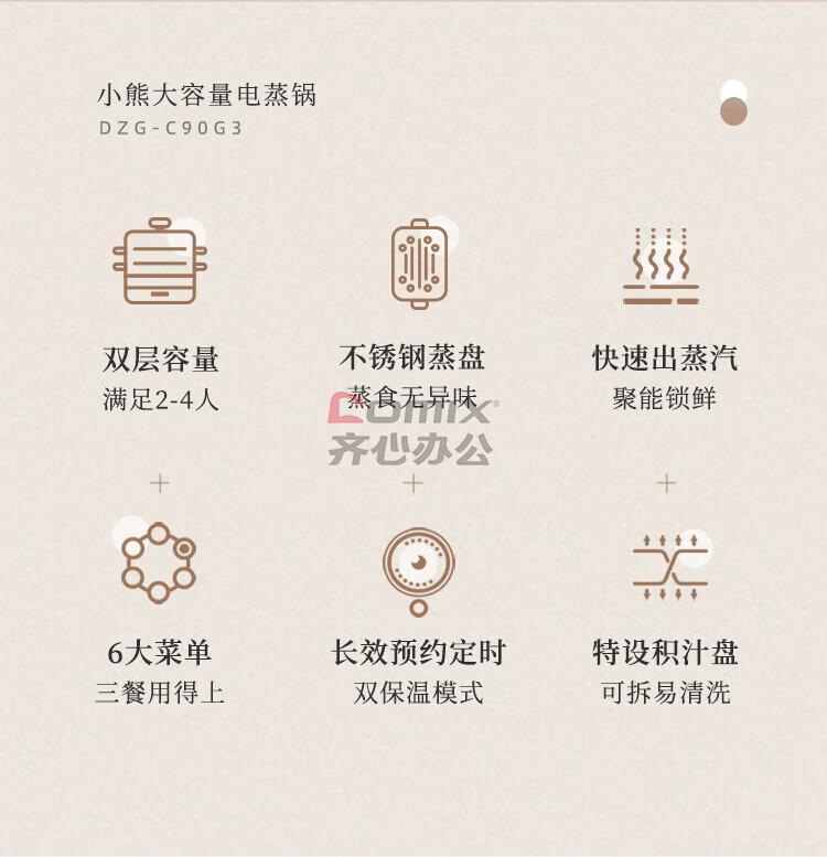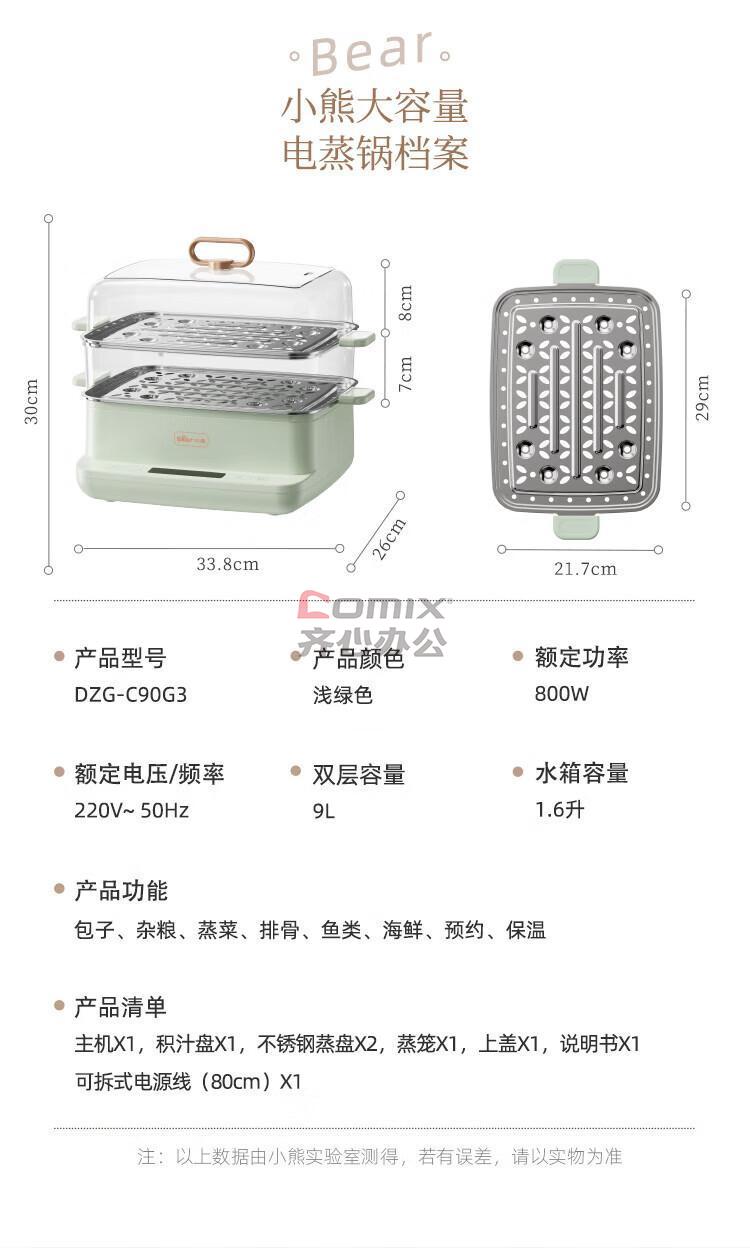 商品名称:小熊 9L 双层电蒸锅 多功能早餐机 DZG-C90G3 单位:台