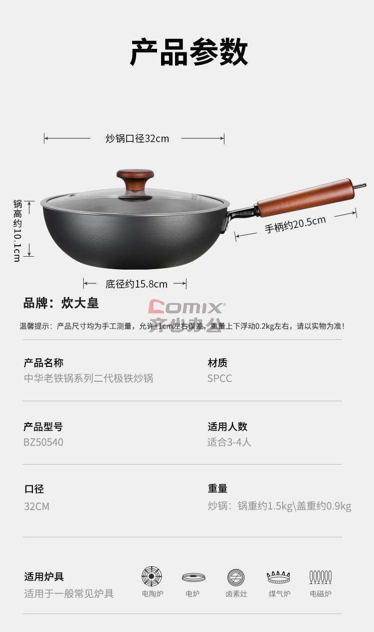 炊大皇 极铁系列第二代精铁炒锅 32cm BZ50540 单位:个