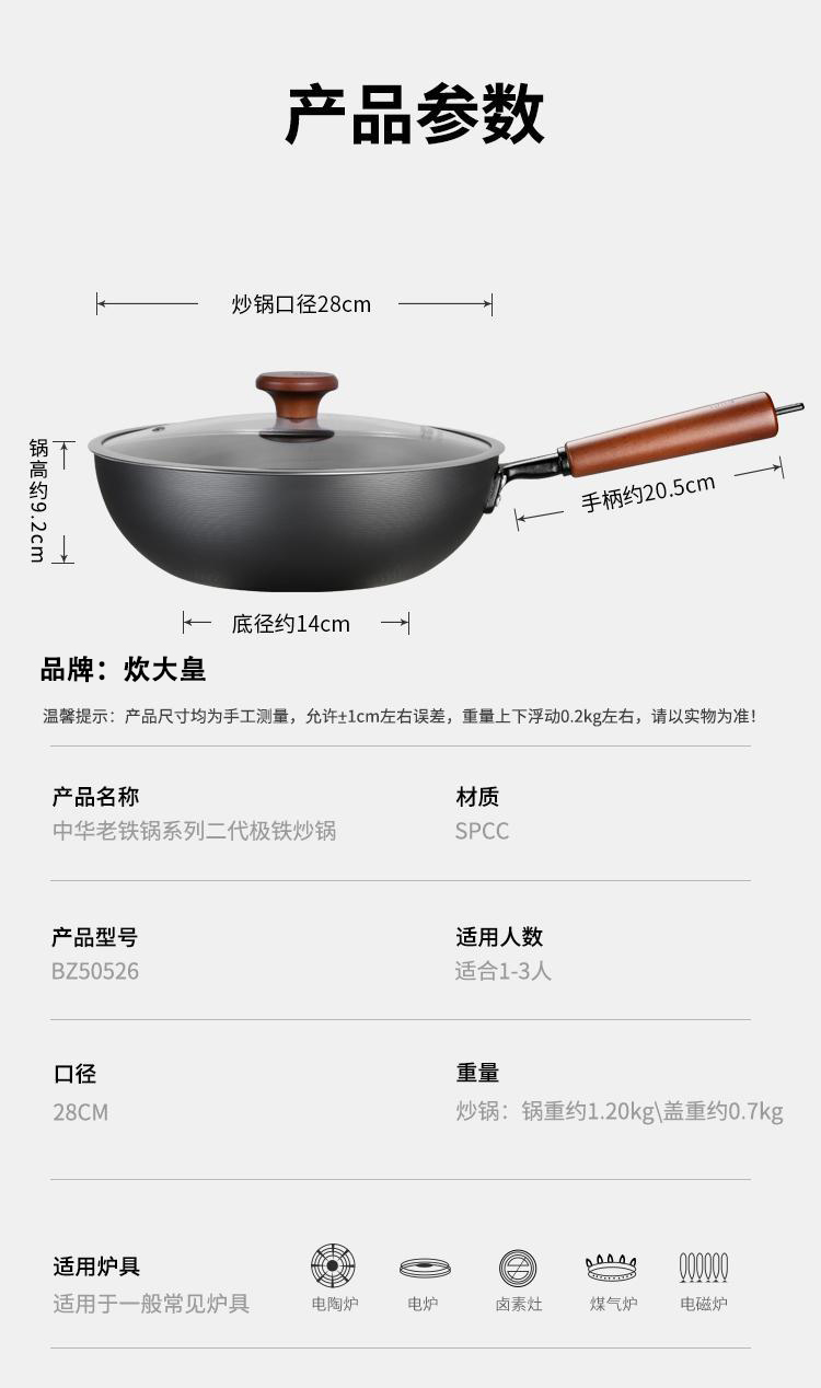 炊大皇 极铁系列第二代精铁炒锅 28cm BZ50526 单位:个