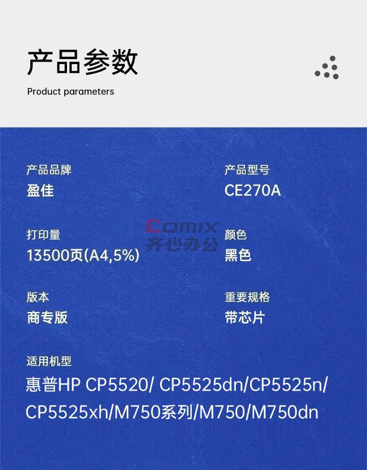 盈佳 CE270A 硒鼓 商专版 带芯片 黑色 13500页(A4,5%)适用于惠普HP CP5520/CP5525dn/CP5525n/CP5525xh/M750系列/M750/M750dn(单位:个)