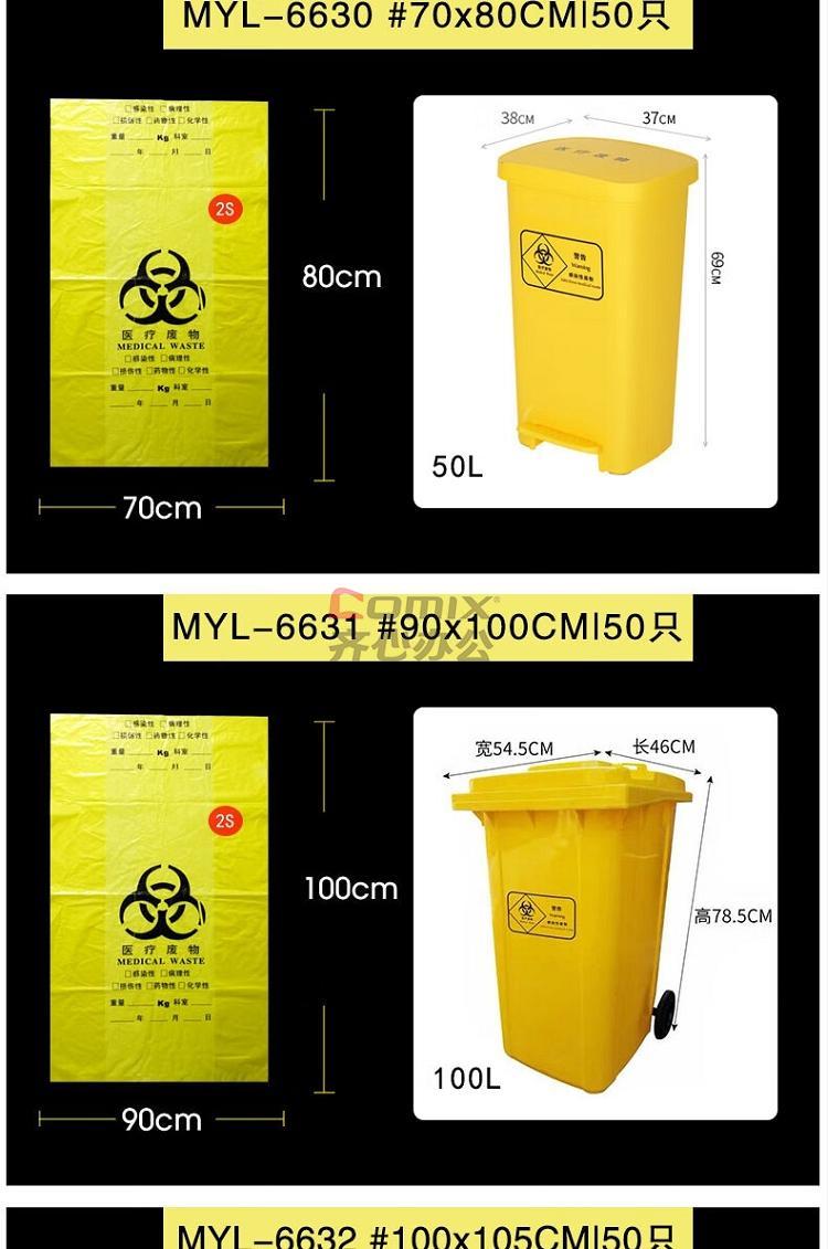 商品名称:敏胤 MYL-6631 90*100cm 医用 废弃袋 黄色 50只/包 2包/件 单位:件