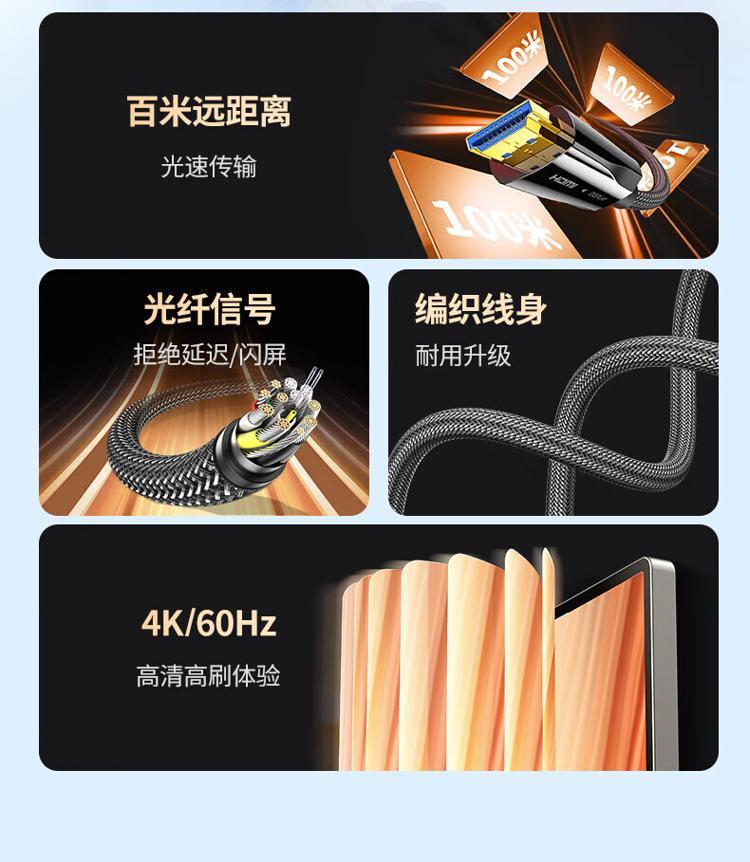 商品名称:绿联 HD137 70565 10米 HDMI2.0工程级光纤线高清线 单位:条