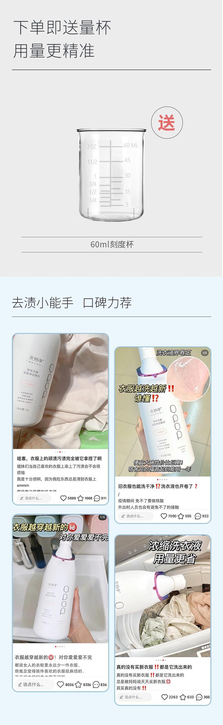 商品名称:光妙净 纳米光解深层净衣精华洗衣液 1kg 单位:瓶