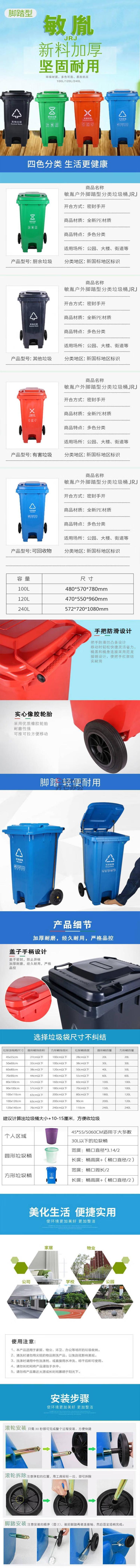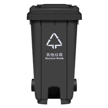商品名称:敏胤 JRJ120BU 120L 灰黑色 户外带轮带盖挂车脚踏垃圾桶(新国标) 其它垃圾标识 单位:个
