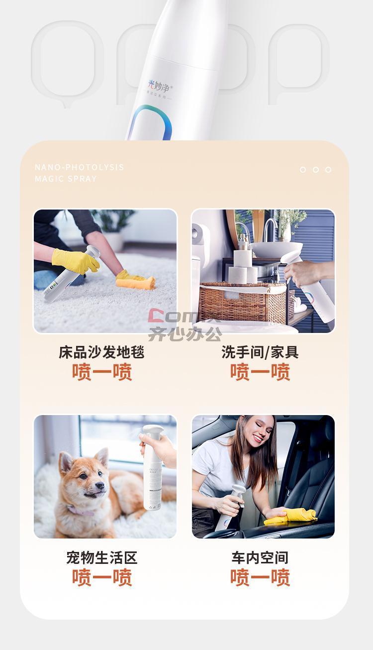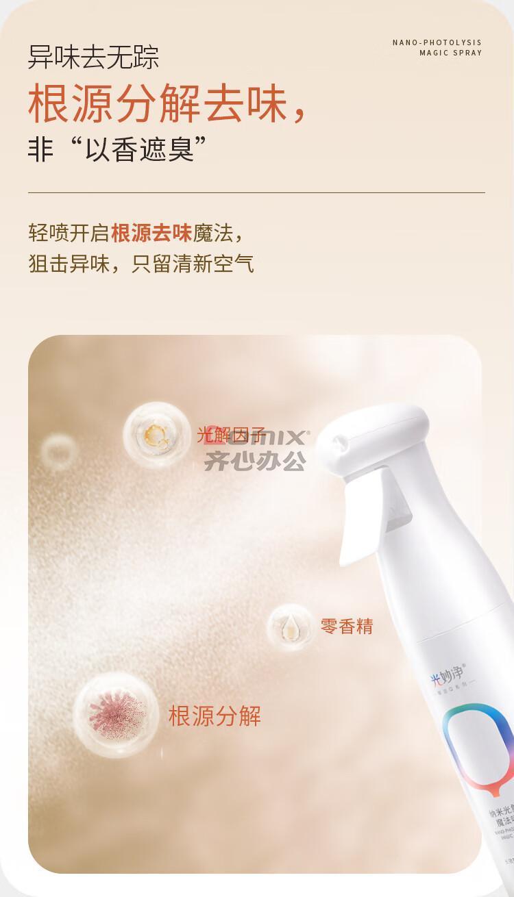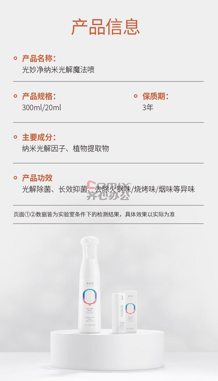 商品名称:光妙净 衣物除菌去味喷雾 纳米光解魔法喷(泵头款) 300ml 单位:瓶