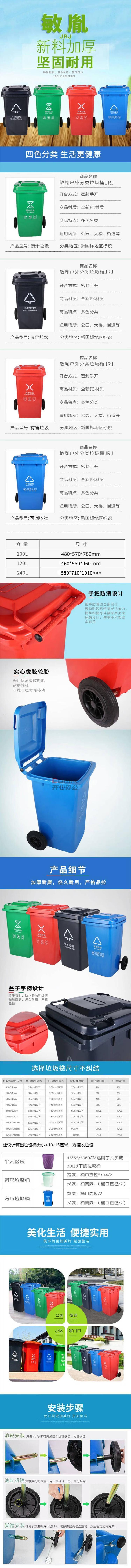商品名称:敏胤 JRJ240DH 240L 红色 户外带轮带盖普通款垃圾桶(新国标) 有毒有害垃圾标识 单位:个