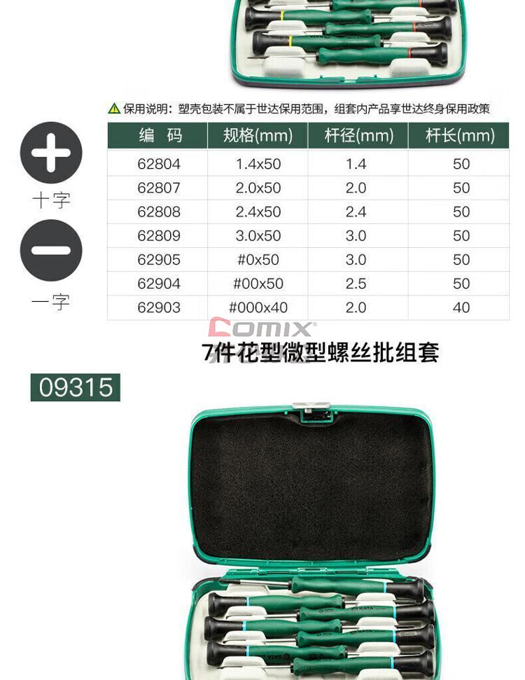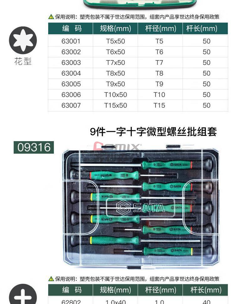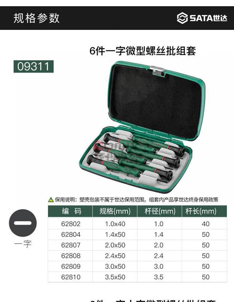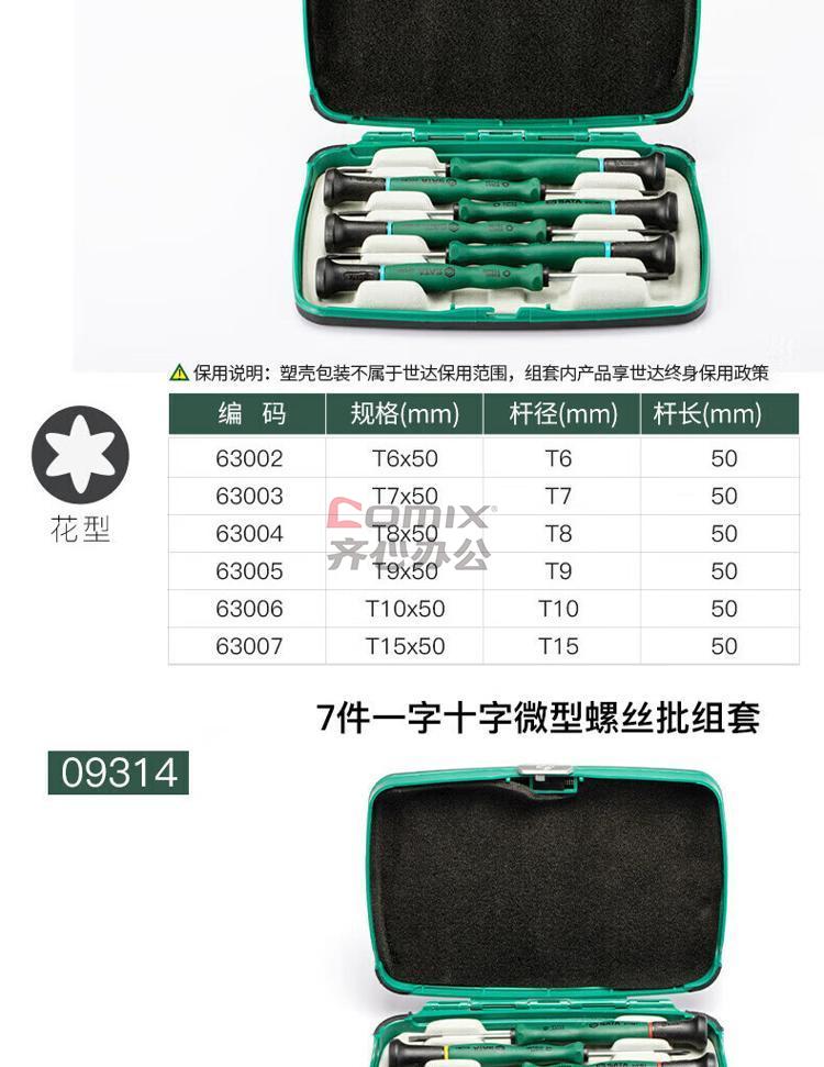 商品名称:世达 螺丝批组套 09309 6件T系列 单位:套