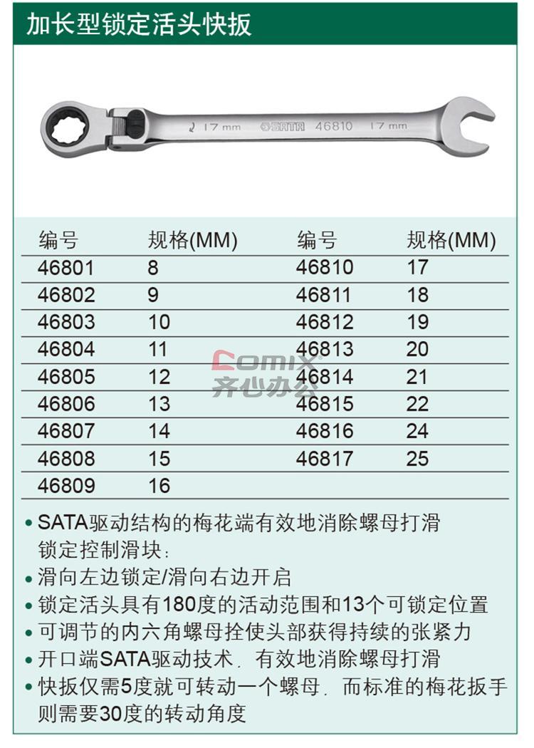 商品名称:世达/SATA 锁定活头快扳 46810 单位:把