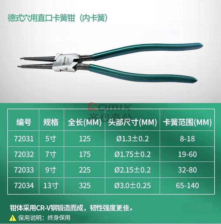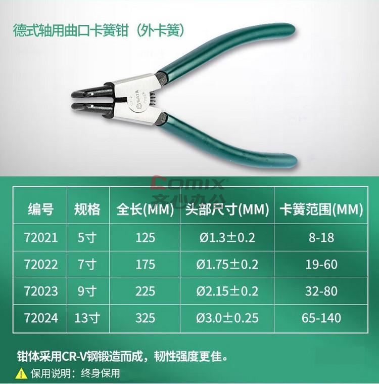 商品名称:世达 德式穴用曲口卡簧钳5 72041