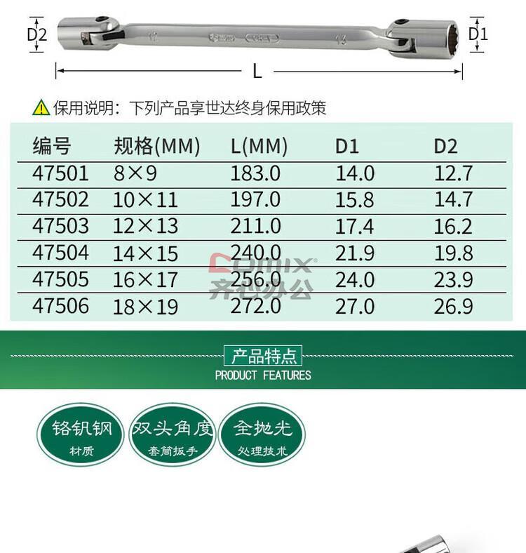 商品名称:世达 扳手 47502 10x11MM 单位:把