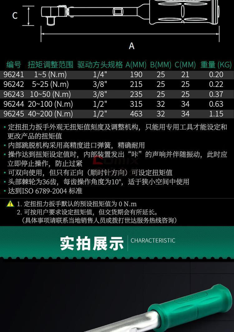 商品名称:世达(SATA) 1/2"系列定扭扭力扳手40-200N·m 96245