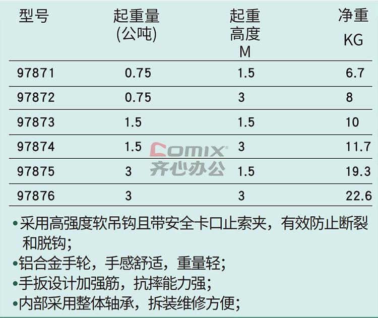商品名称:世达/SATA 重型手拉葫芦 97861 额定载重:1000kg 起升高度:3m