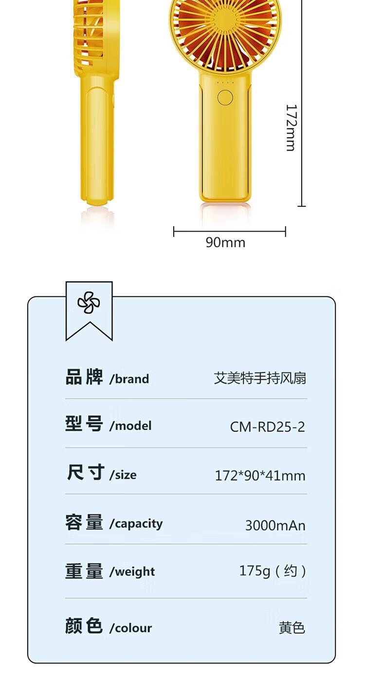艾美特(Airmate) CM-RD25-2 手持风扇小风扇办公室便携可电风扇 黄色 单位:个