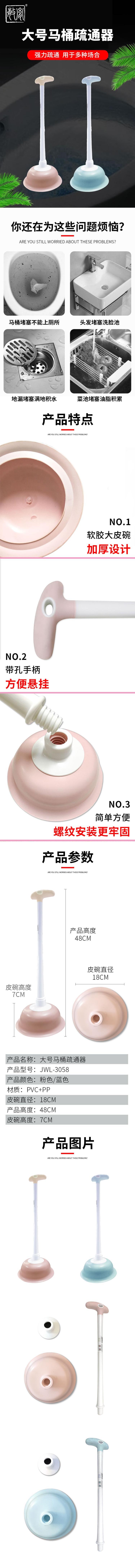 商品名称:敏胤 JWL-3058 大号马桶疏通器 混色 6把/件 单位:件