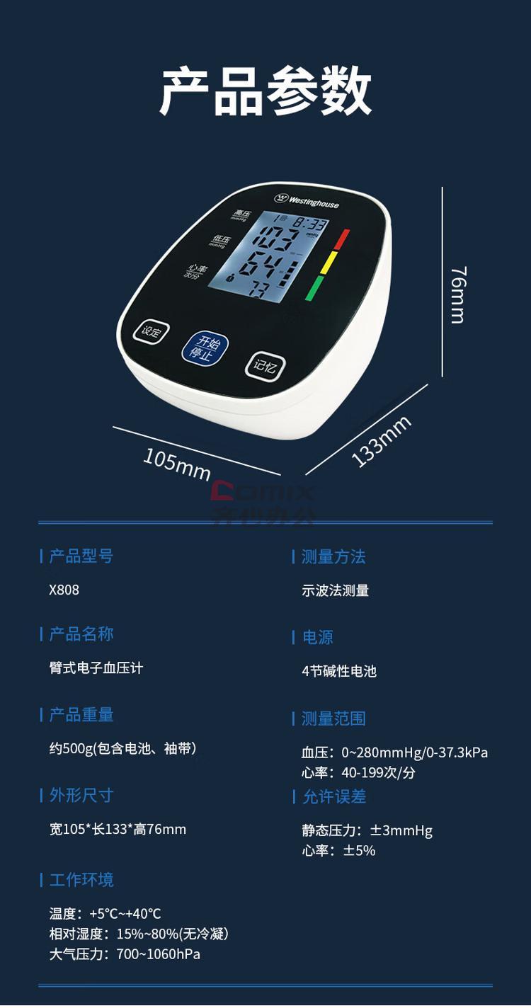 商品名称:西屋 X801 臂式电子血压计 单位:个