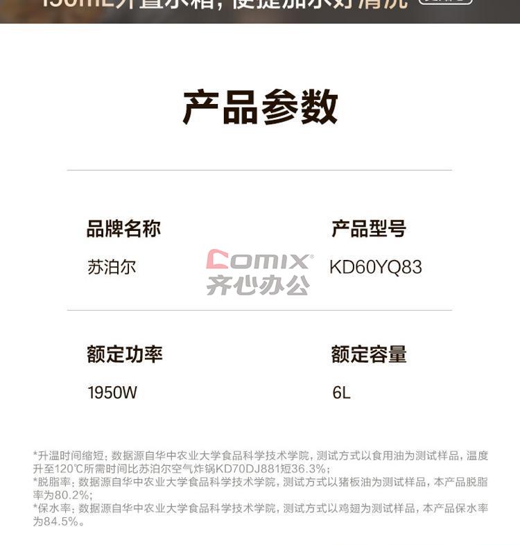 商品名称:苏泊尔 KD60YQ83 空气炸锅 单位:台