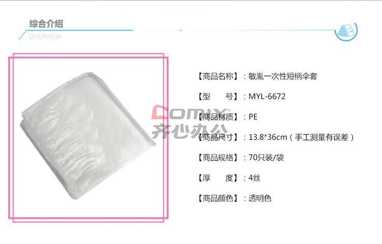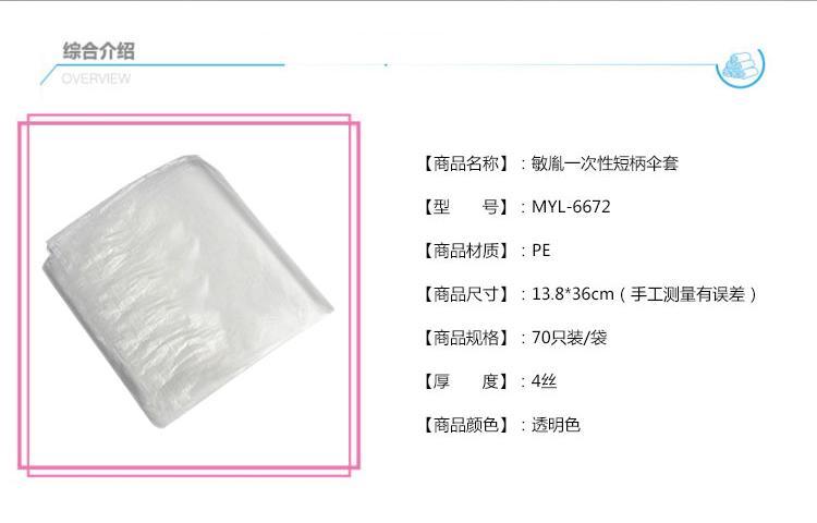商品名称:敏胤 MYL-6672 一次性短伞套 白色 5包/件 单位:件