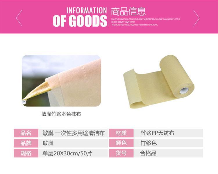 商品名称:敏胤 一次性竹浆本色抹布单卷50片 竹浆本色 3卷/件 单位:件
