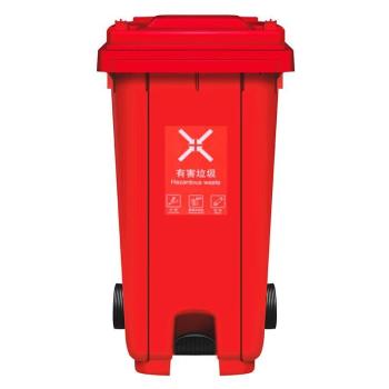 商品名称:敏胤 JRJ240DG 240L 红色 有毒有害垃圾标识 户外带轮带盖挂车脚踏垃圾桶(新国标) 单位:个