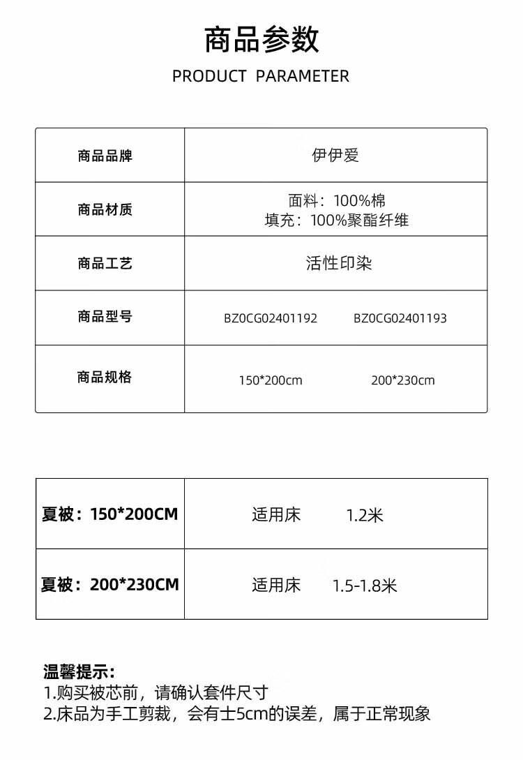 商品名称:伊伊爱 BZ0CG02401193 全棉针织棉提花夏被 200*230cm(单位:条)