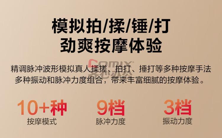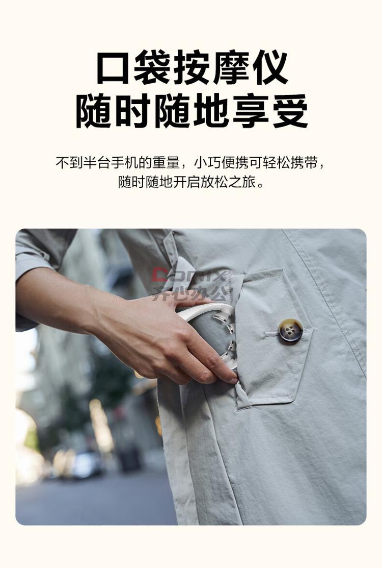 操作方式:滚轮按键/APP 材质:ABS+ABS/PC+硅胶+SUS304 按摩模式:机身5种+App5种 语音提醒:有(标准女音)、可静音 物理按摩力度:3档(振动) 脉冲力度:9档 热敷:3档; 红光:3档 充电方式:Type-C 电池容量:1000mAh/3.7Wh 充电时长≤3.5h 续航:15min一个循环,≥6个循环 产品净重/毛总:125g/478g 外箱净重/毛重:3.5/14.38g 彩盒尺寸:174*189*65mm 中箱尺寸:181*200*77mm 外箱尺寸:565*381*422mm 装机数量:28台/箱; 包装清单:主机*1、typeC数据线*1、说明书*1