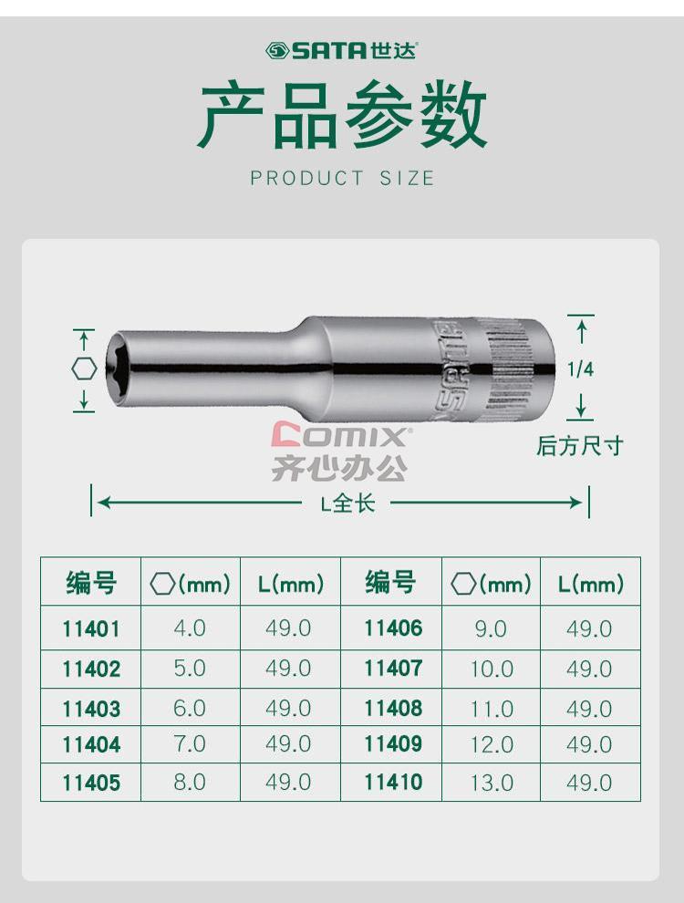 商品名称:世达 六角套筒 11405 6.3mm系列公制8mm 单位:个
