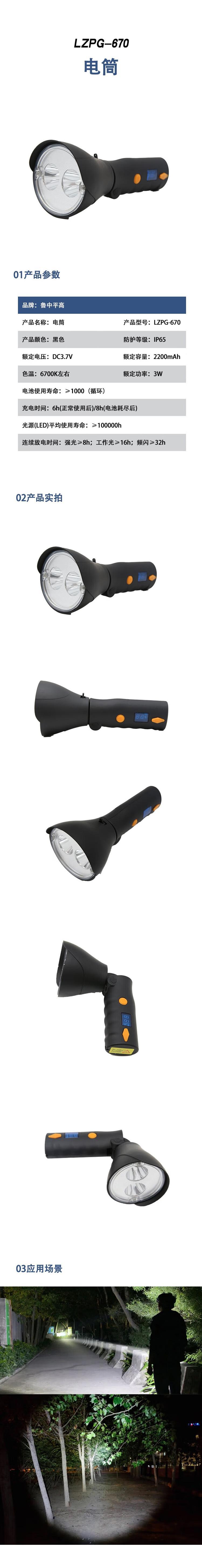 | 商品型号 | LZPG-670 3W 强光≥8h 工作光≥16h 频闪≥32h IP65 LED |