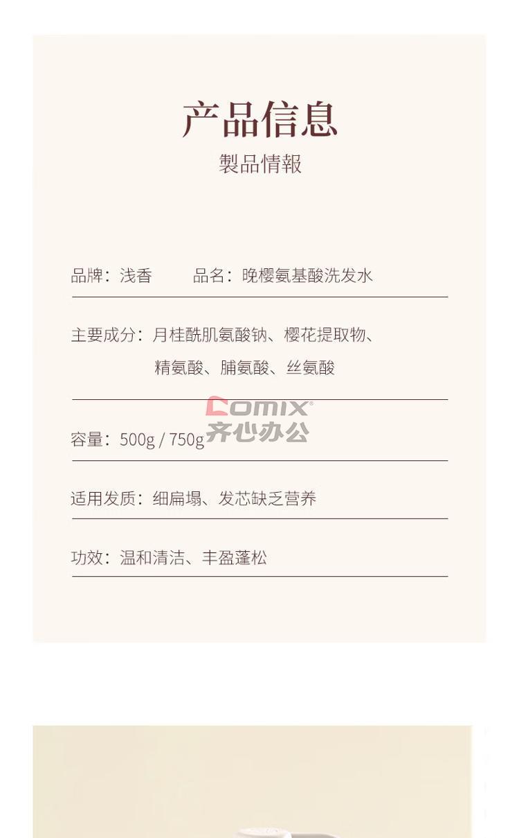 商品名称:浅香日本晚樱氨基酸洗发水750g 单位:瓶