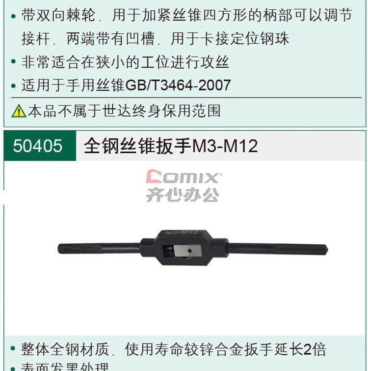 商品名称:世达 50405 全钢丝锥扳手 M3-M12 单位:个
