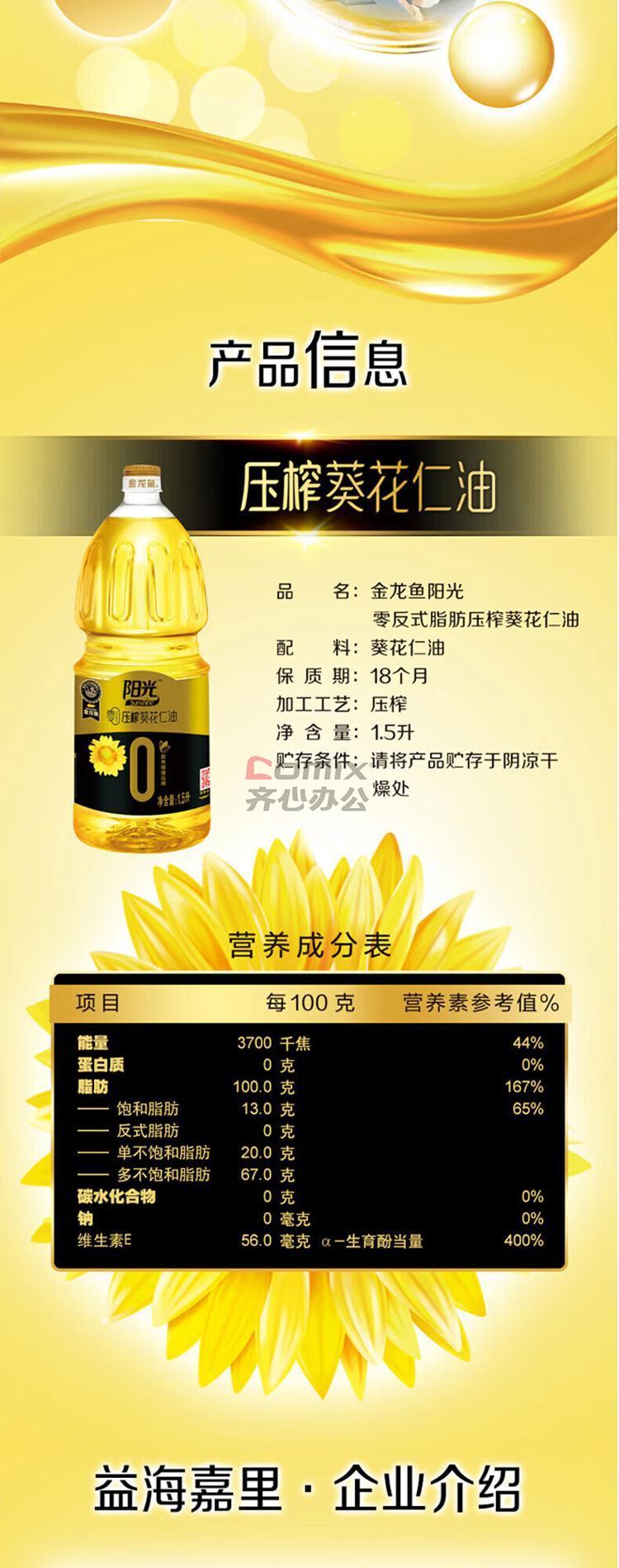 商品名称:金龙鱼 1.5L 食用油阳光零反式脂肪压榨葵花仁油 单位:桶