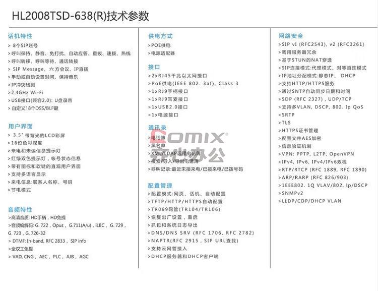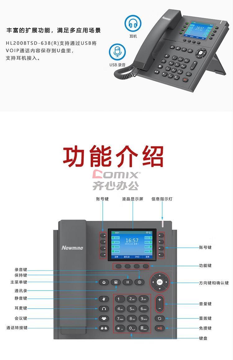 商品名称:纽曼(Newmine)HL2008TSD-638(R)商务办公 IP电话机